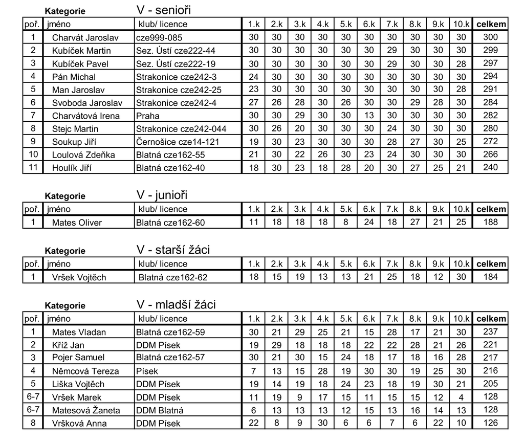 I přes řadu omluvenek jsme se na louce sešli v hojném počtu. Přijeli kolegové ze Žehrovic v čele s náčelníkem Jirkou Hlouškem. Dále kluci ze Strakonic, Českého Krumlova, Prahy, Sezimova Ústí a mládež z Černošic či z DDM Písek. Za blatenský klub nás létalo sedm seniorů, jeden junior a čtyři žáci. Další kolegové z klubu byli přítomni jako časoměřiči. Škoda malé účasti žáků z modelářského kroužku při DDM Blatná.