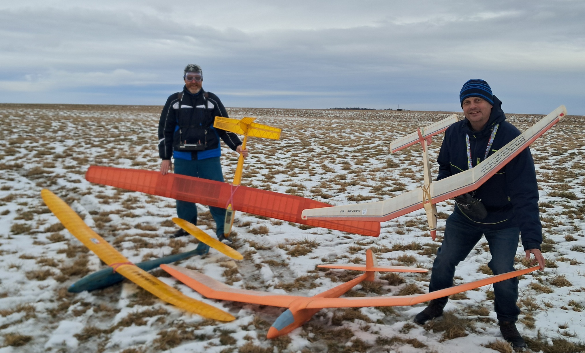 Samotné počasí během února bylo sice typicky zimní, ale nabídlo několik velmi příznivých letových oken. Jedno z nich jsme využili i my a poslední únorový den jsme společně odlétali soutěžní lety s pestrou sestavou modelů ESSO, pětkrát LION, Cirrus 75 a Admiral 2.