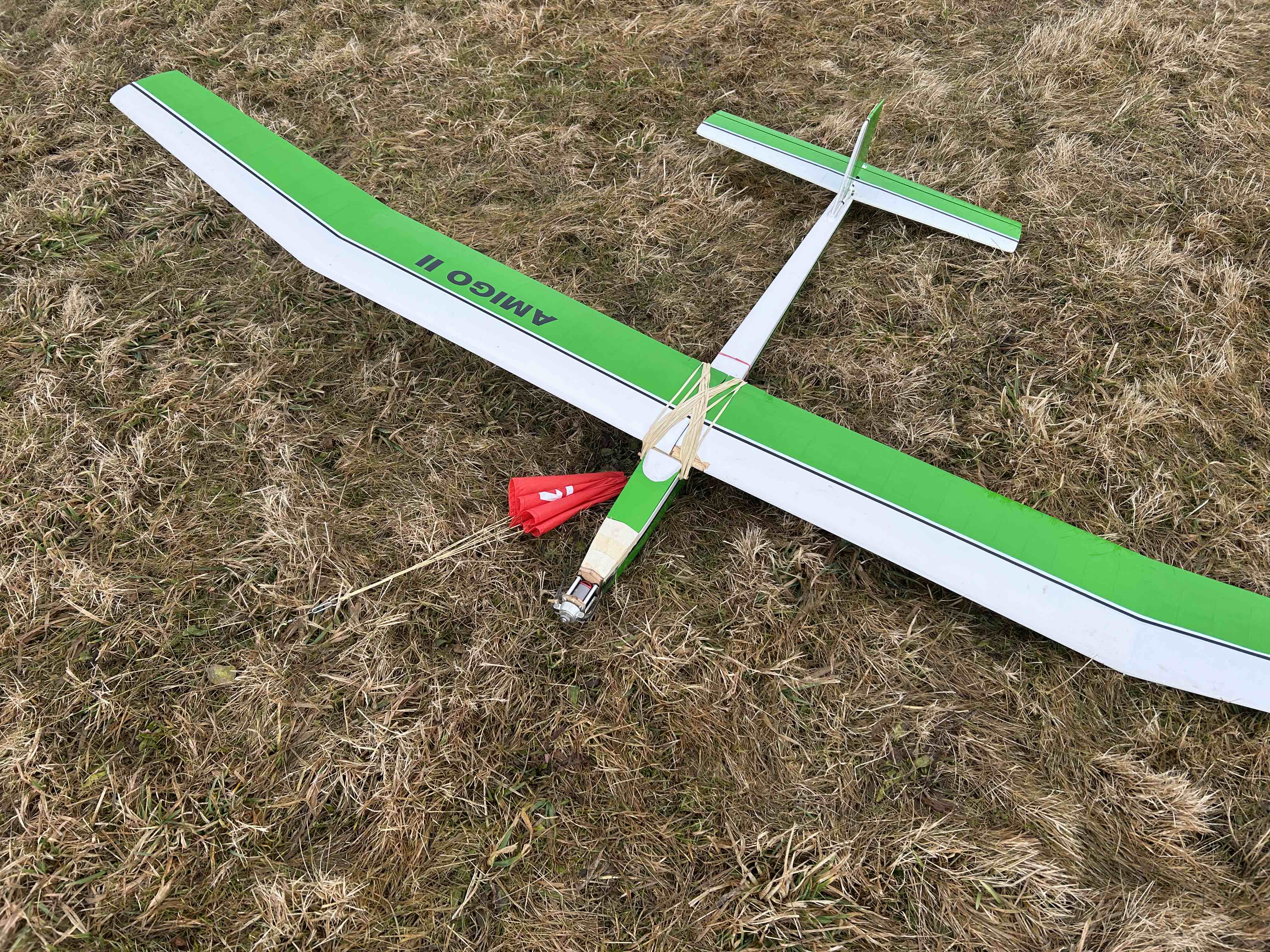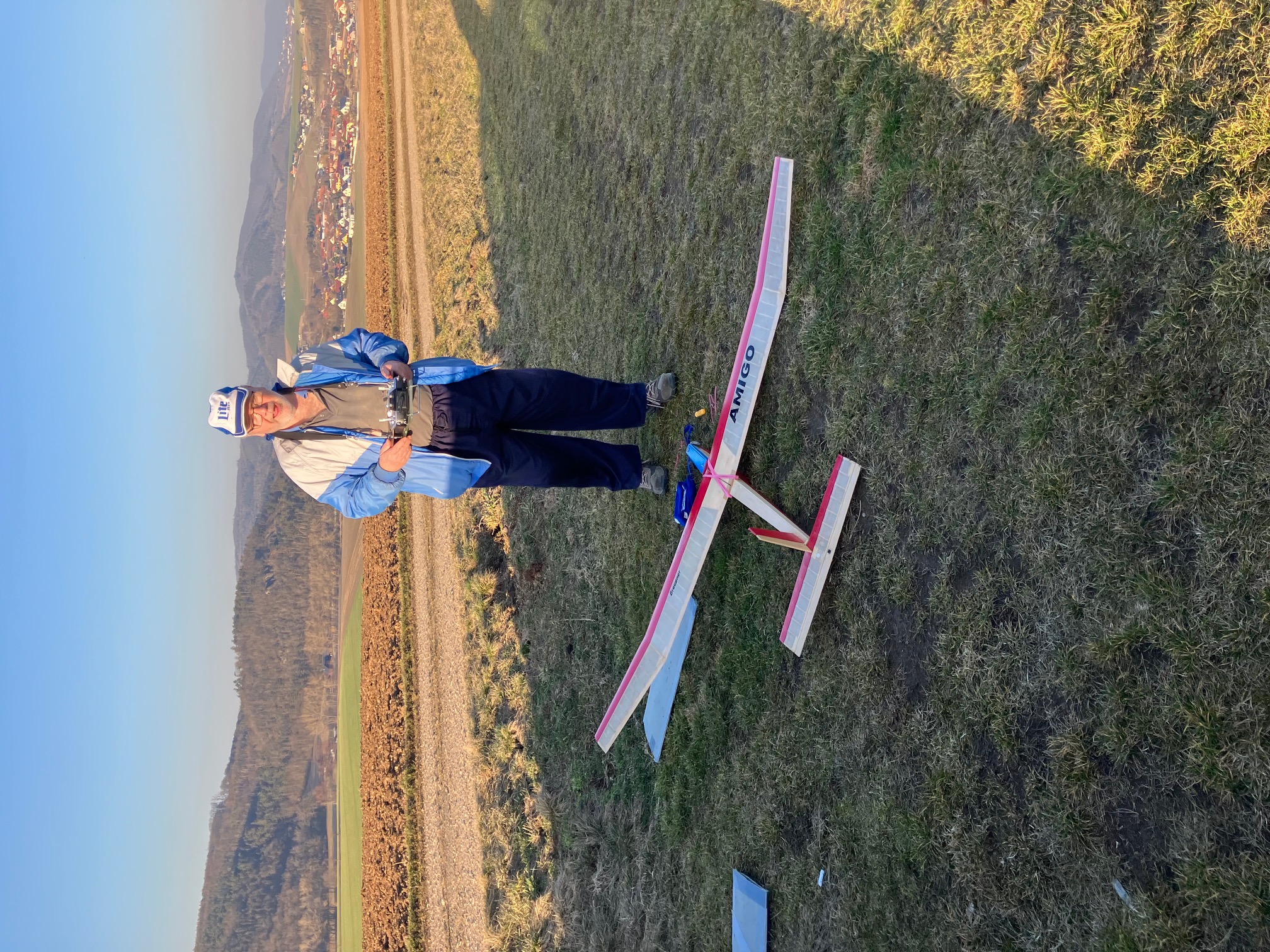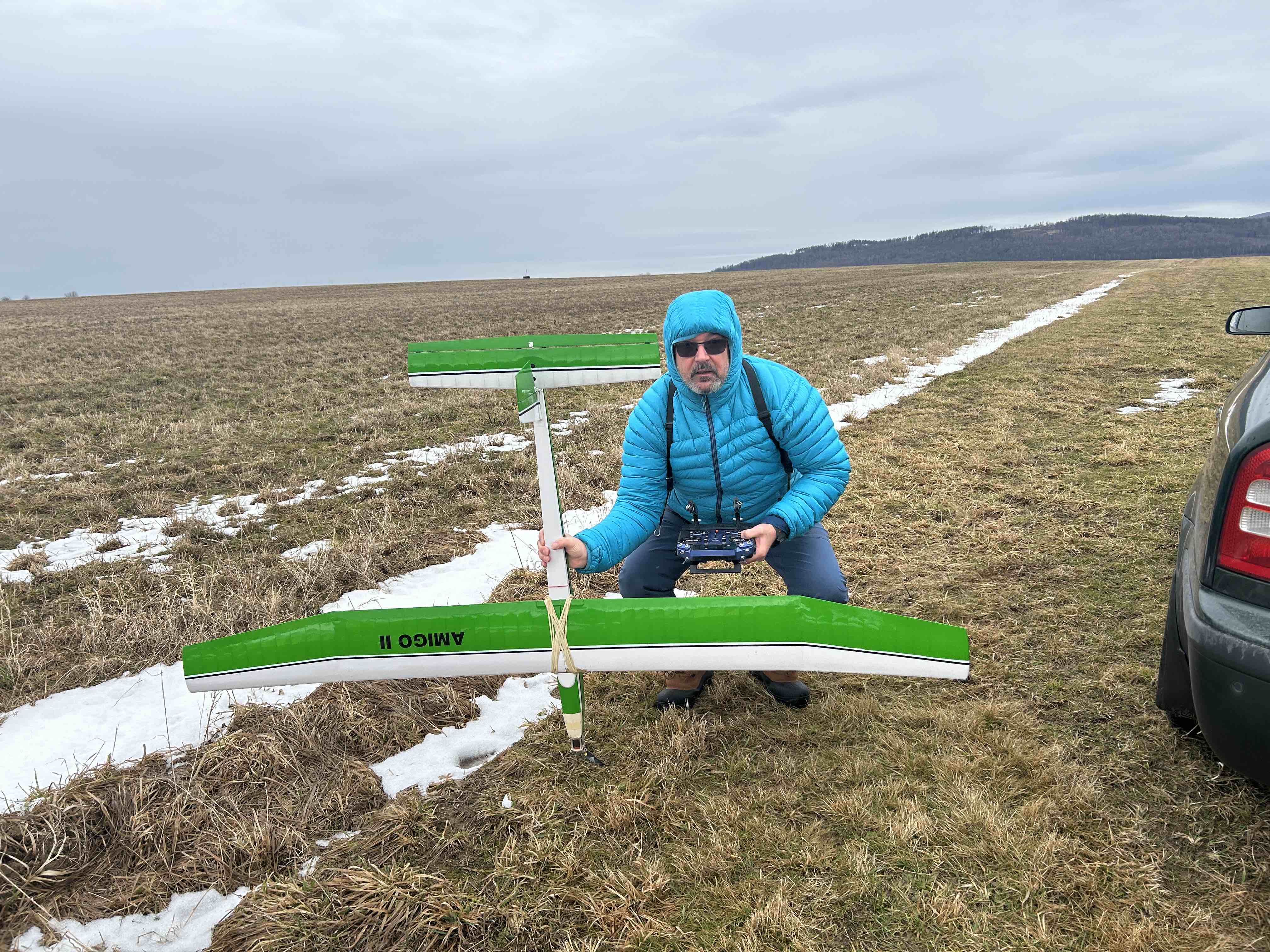 Přeji pěkné čtvrteční odpoledne. 26.2.2026 Letiště Mikulovice Nová Ves na konci dráhy. Počasí větrné od jihozápadu se sluníčkem do obličeje. V nehostinné neděli jsem odlítal retro větroně a retro PM dneska. Model Amigo II F.Militki 1966. Časy podle počasí dle mého dobré.